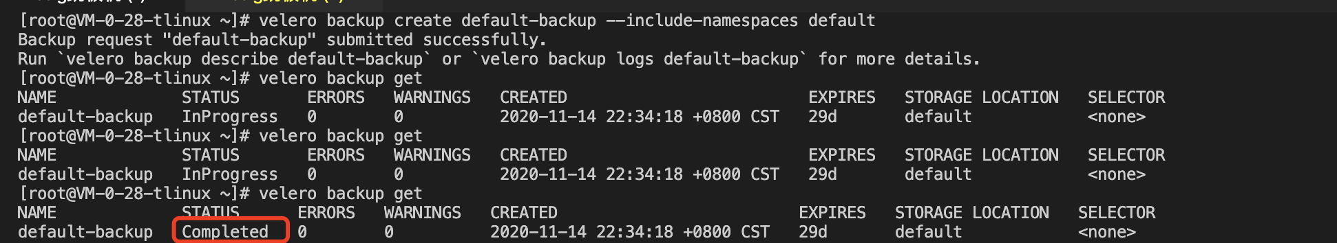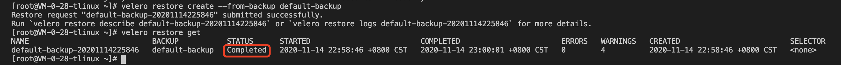 At this point, The installation using Tencent Cloud COS as Velero storage location is complete, If you need more installation information about Velero, You can see the official website Velero documentation .